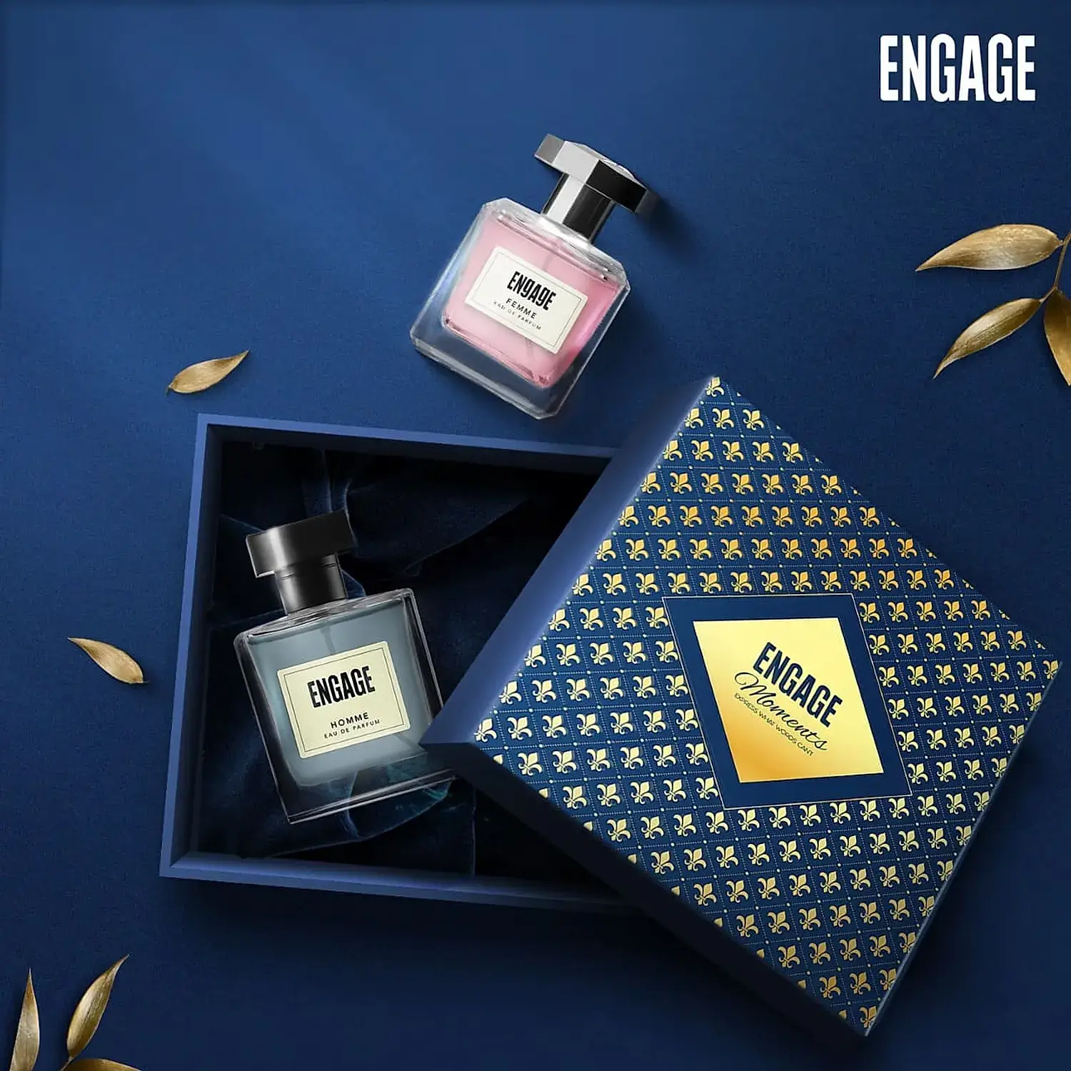 - Engage Femme is a premium perfume with fresh peppy citrus notes on an aromatic floral base, warmed by a base of amber and woods that celebrates femininity.Engage Homme is a premium and complex fragrance for the modern man who follows his instincts. The dazzling notes of bergamot combined with herbal notes compose an intense, aromatic earthy blend with patchouli. The scent develops on a warm, woody base of oak moss and sandalwood, leaving a lasting impression of elegance and virility.
